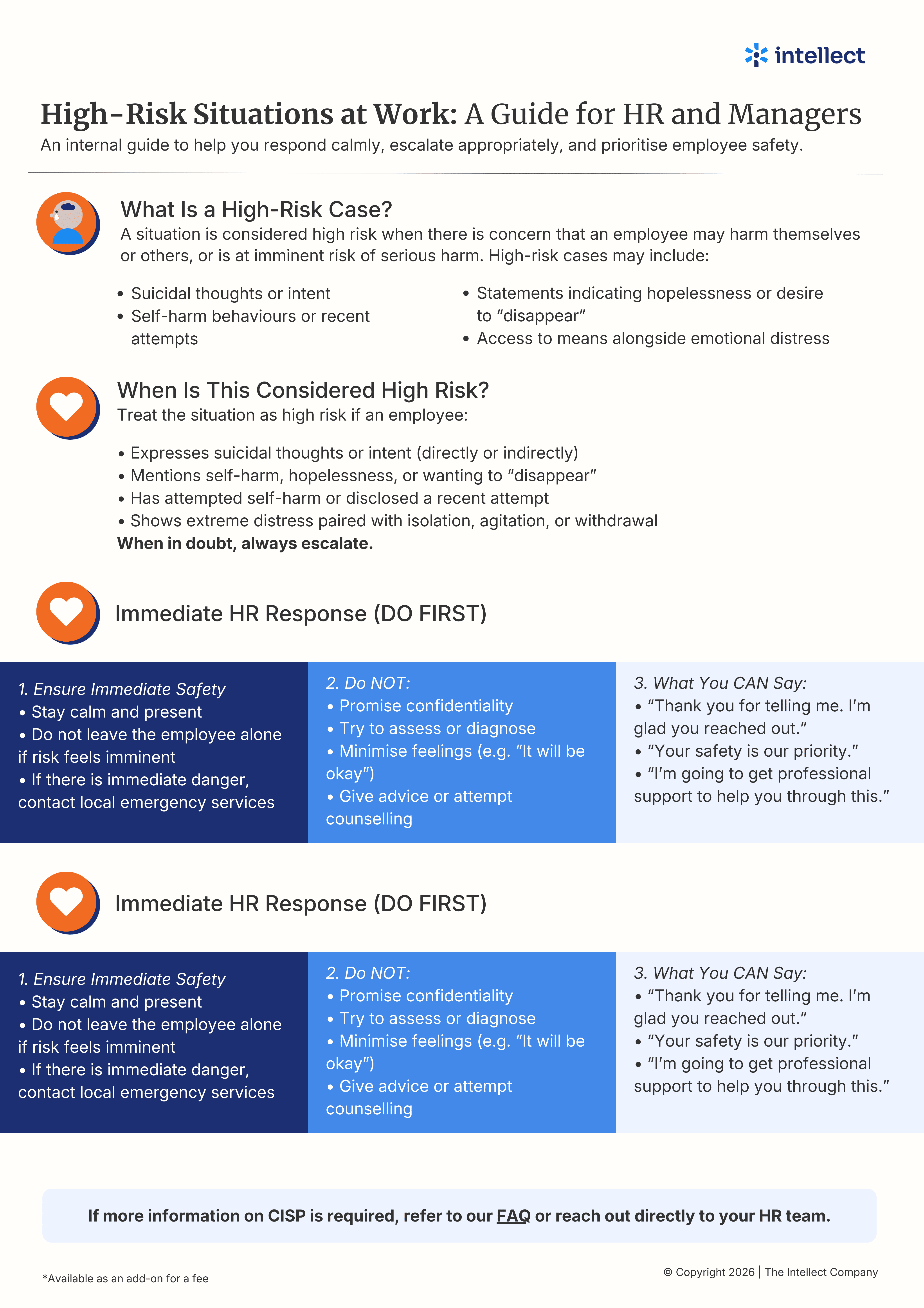 Collateral regarding Intellect's Critical Incident Support Plan (CISP) to support your organisation